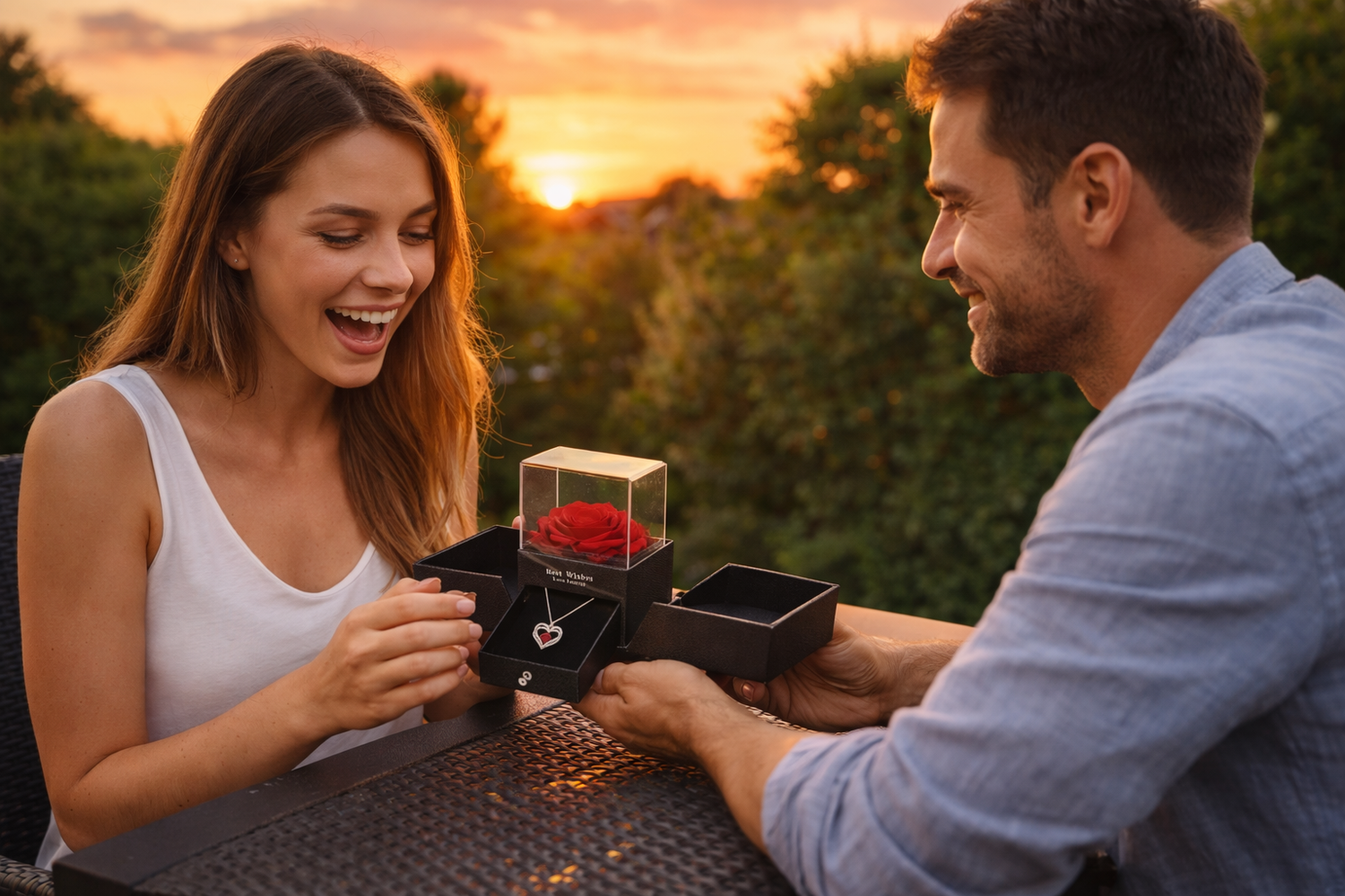 Dla Niej – Naszyjnik Serce z Wieczną Różą, Prezent który Mówi „Kocham”